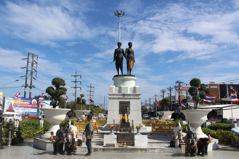 푸켓의 역사를 놓고 말할 때 버마와의 전쟁을 빼놓을 수가 없다. 태국은 버마와 1785년 Ten Armies' Wars라 불리우는 전쟁을 치렀다. 버마와의 전쟁에서 선봉에 나선 사람이 바로 Thao Thep Krasattri 와 Thao Si Sunthon 이라 불리우는 자매였다. 버마 군대가 푸켓을 침공했을 때, 푸켓군대를 맡은 사령관은 죽었다. 버마군들은 이사실을 알고 쉽게 푸켓을 손에 넣을 것이라 생각했다. 그러나, 푸켓사령관의 미망인 Khun Jan과 자매 Khun Mook은 푸켓섬의 모든 여성들에게 군복을 입고 딸랑시티 성벽에 모이라고 명령했다. 버마병사들은 딸랑시티 성벽뒤에 모여있는 엄청난 병사들(군복을 입은 푸켓여성들)의 수와 위세에 늘려 진격명령을 내릴 수가 없었다. 식량도 부족해 할 수 없이 버마로 돌아갈 수 밖에 없었다. 버마와의 전쟁에 지대한 공을 세운 두자매(미망인 Khun Jan과 자매 Khun Mook)는 라마1세로부터 Thao Thep Kasatri . Thao Sri Sunthon라는 영예로운 호칭을 받았다. 이들 두자매의 용맹함을 기리는 영웅자매동상은 공항에서 푸켓타운 방향으로 가는 402번도로에서, 라구나단지,아오포로 갈리는 도로와 만나는 아눗사와리 지역에 위치한다. 푸켓역사를 자세히 살펴볼 수 있는 딸랑 국립박물관도 영웅자매동상인근에 위치한다.