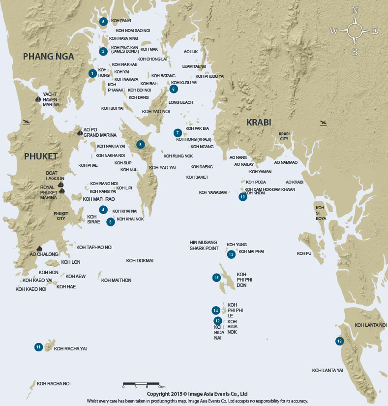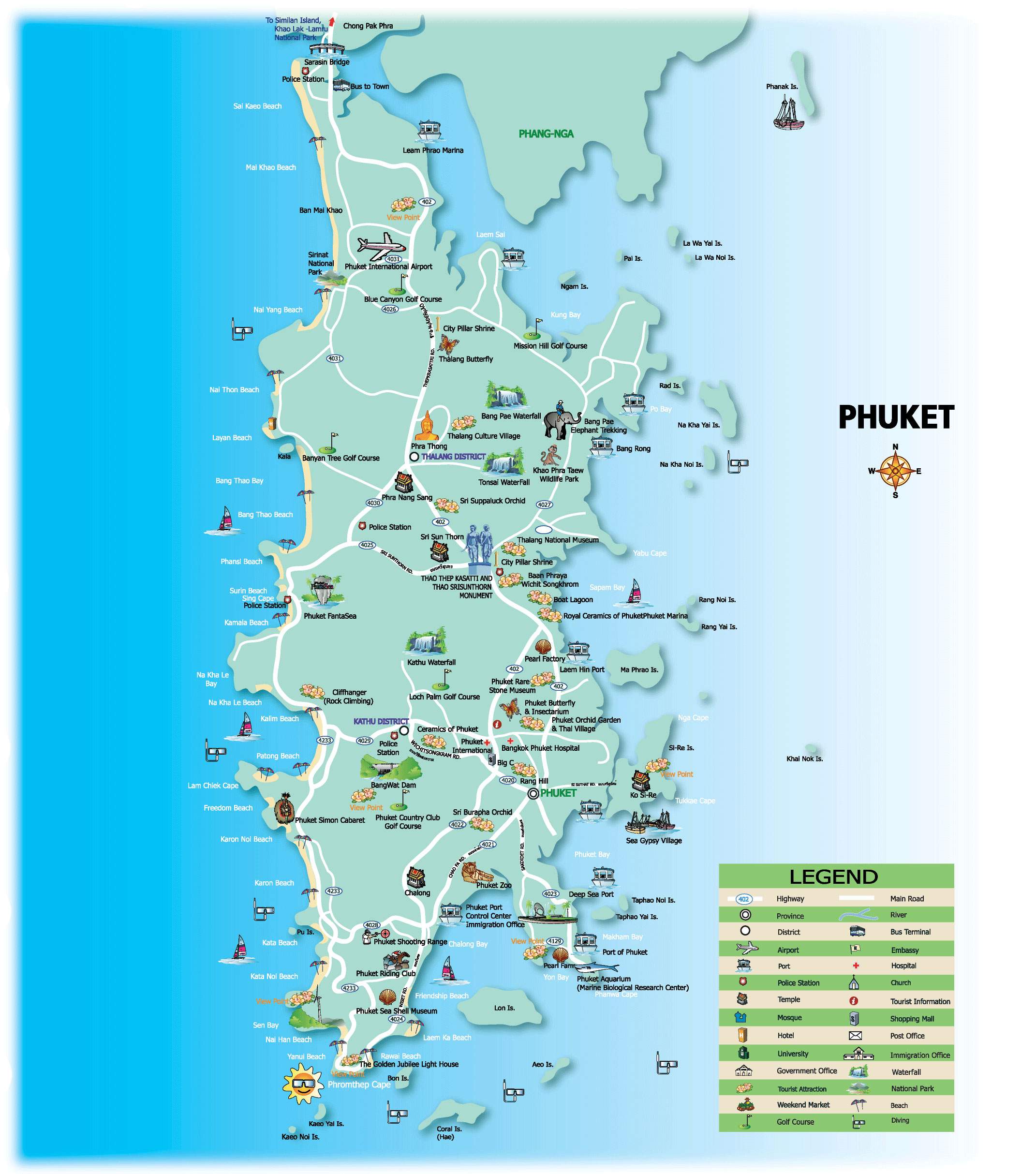 푸켓주변섬- 본섬,산호섬,론섬,마이톤섬,라차섬,마프라오섬,나카섬,코야오,코판위섬등이 위치한다.